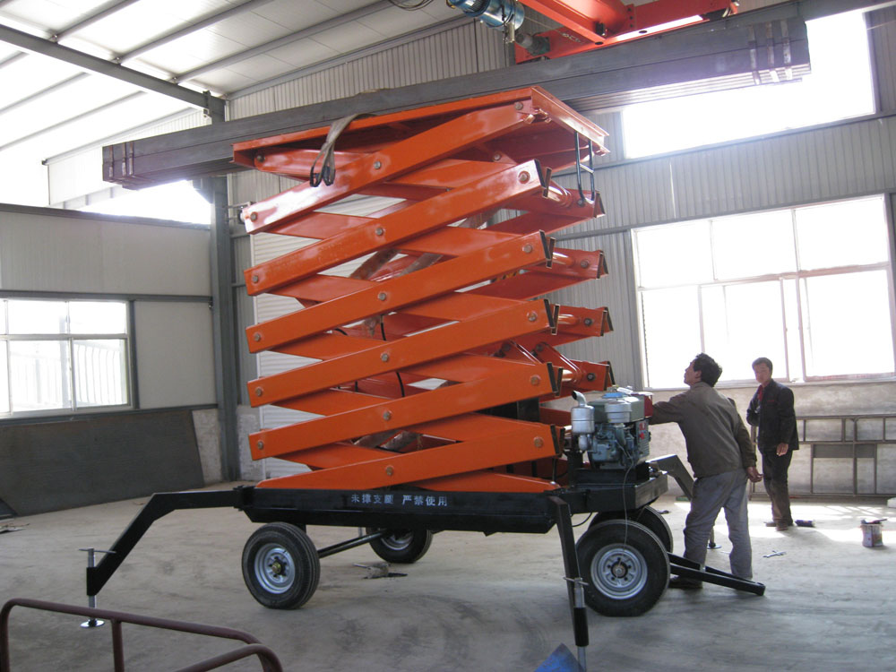 四轮移动式升降机是用途广泛的高空专业设备。它的剪叉式机械结构,使升降平台起升后有较高的稳定性,宽大的作业平台和较高的承载能力,使高空作业范围更大,并适合多人同时作业。它使高空作业效率更高,安全更保障。