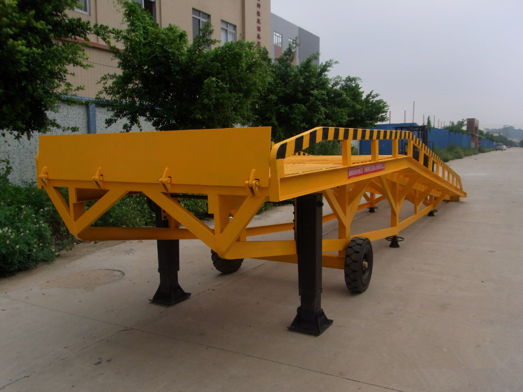 移动式液压装载过桥广泛用于无装卸设备的货台以及流动装载场所,是叉车配合使用的货物装卸辅助工具。借助该设备,叉车能直接驶入汽车车厢内部进行批量装载作业。只需单人操作,不需动力电源,即可实现货物的快速安全装卸。这即减轻了劳动强度,又成倍的提高了装载作业效率。加快物料流通速度,获取更大的经济效益。