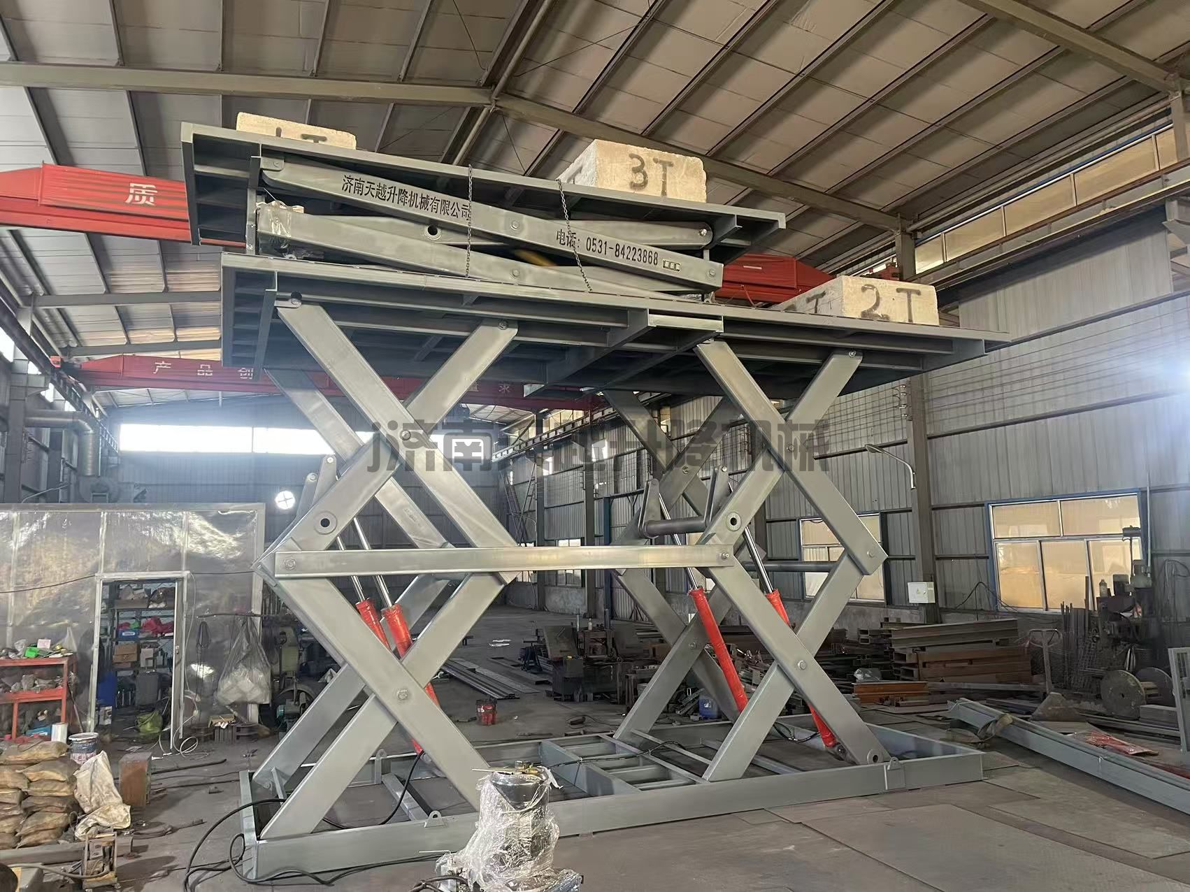 产品简介:大吨位升降平台双跨式采用剪叉式升降结构,主体采用Q235高强度锰钢,图中双跨式大吨位升降平台载重15吨,平台尺寸7.5米*3.5米,升降高度6米,设有超载报警,压力报警,应急下降等功能,产品为客户定做,双跨式或者多跨式的结构可以将工作台的尺寸做到十几米甚至更多。