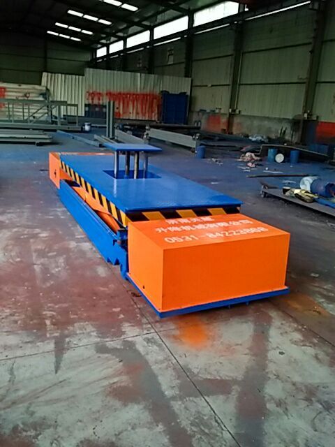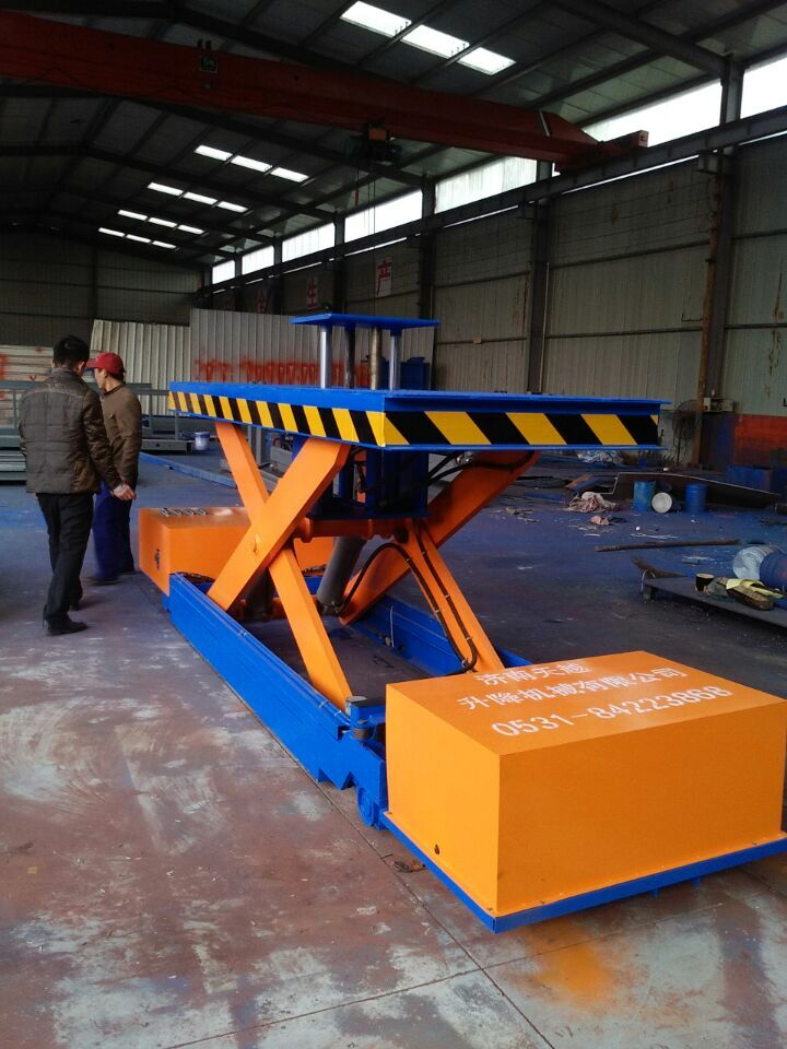 5吨升降平台车,本产品为西安铁路局定做,用于机车维修,可自行走,二次升降,载重量5吨,全电瓶驱动。