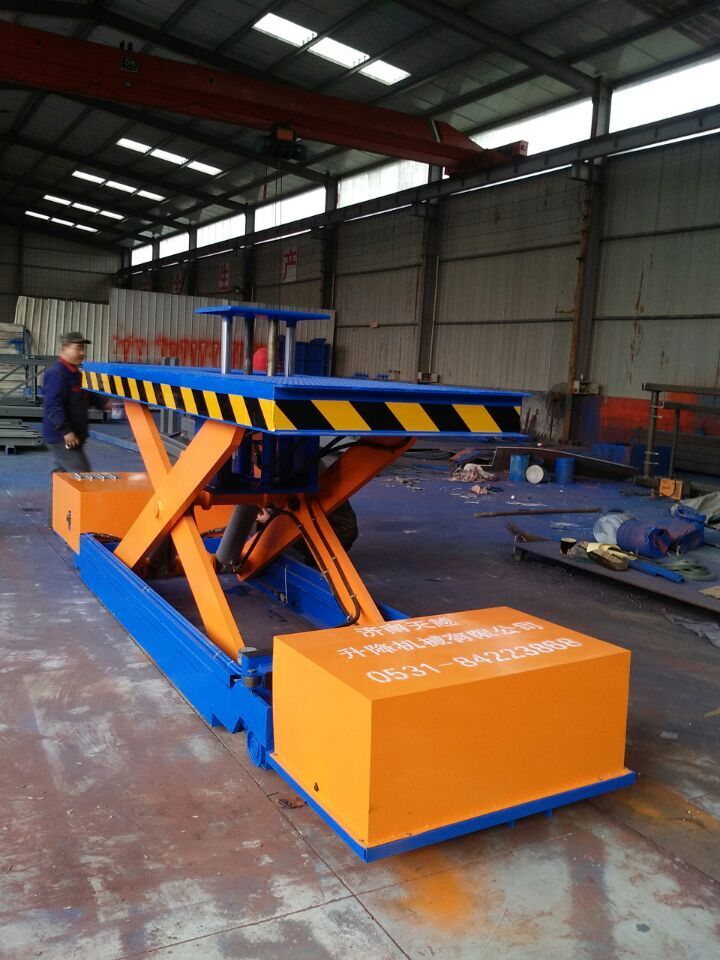 产品简介:产品为西安铁路局定做,用于机车维修,可自行走,二次升降,载重量5吨,全电瓶驱动。 适合自己的升降机,才是好的升降机! 济南天越