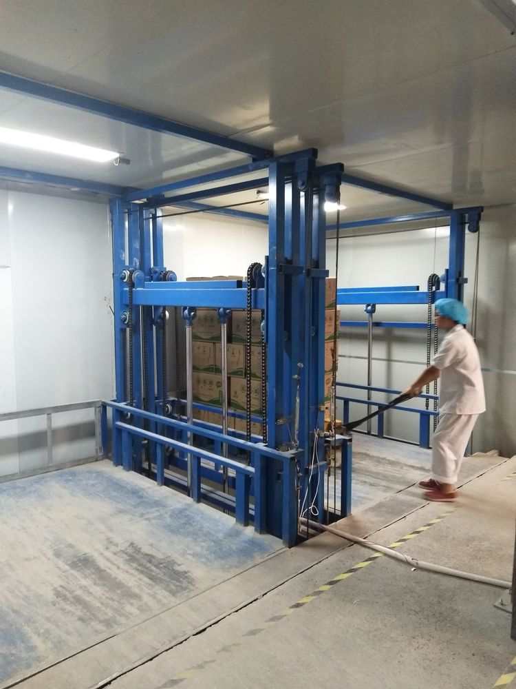 冷库液压升降货梯,即使是零下60°依旧畅通无阻!载重吨位,台面大小,升高高度都可 以按照客户的尺寸定制,冷库专用升降平台建议在冷库安装之前就联系我们,应为需要提前预留地坑和井道,避免造成二次破坏,影响冷库保温层!冷库液压升降货梯在升降机抵达选定层楼后后门能另行关上,后门在关上状况下升降机暂停两边升降运转,确保操作员采用时的安全可靠。冷库液压升降货梯即使四层的掌控按键都备有紧急按键控制器,在向升降机上装卸货物货物运输时可停用紧急控制器,临时性暂停泵升降机的升降运转,以防有其它技术人员在哪个层楼升降载重枱面,进而确保用户的安全可靠