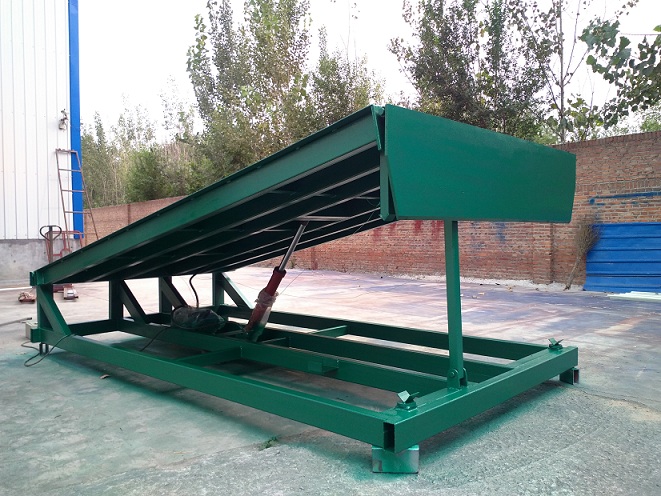![]() ![]() 固定式液压登车桥的应用: 固定式登车桥可根据用户的不同需要,广泛应用于码头、站台、仓库等地。在外形尺寸,承受载荷 等方面都可以作特殊设计。 固定式登车桥安装在货台的侧面,与货台地面和侧面齐平。 固定式登车桥的桥板可上、下倾斜,其外端可高出或低于货台平面,使之与车厢等高。桥板的顶端有一翻板,自动搭在车厢边缘,使货台与车厢平稳过渡。 固定式液压登车桥的特点: 1、电控操作只需按动按钮,调节板会自动升起,操作极其简单;松开按钮,调节板靠 自重下降, 活页搭板搭在货车上即可使用。 2、通过动力系统,大油缸升起整个斜板,至顶位时,小油缸开始工作,顺畅伸出活页搭板,高度调节板全部采用济南济钢优质高度花纹钢板及型材紧密焊接,寿命长久。 3、液压系统采用意大利原装进口的优质品牌产品,性能卓越,极少维修。 4、独特的"流线型"开放式活页关节设计,比其它传统的管式关节增加焊接面积达3倍 以上,大大延长使用寿命,且方便维护。 5、调节板两侧分别有3块活动板,可有效避免调节板下降时压伤脚趾的危险,以确保安全。固定式登车桥调节板底座前面为开放式设计,清理杂物方便快捷。 6、独特设计的"工"字钢骨架能平均承托压力,且减少骨架的扭力,比其他槽钢结构更坚固 耐用。 7、在维护、保养和清洁时,用撑杆支撑起调节板,更加安全可靠。 部分型号: