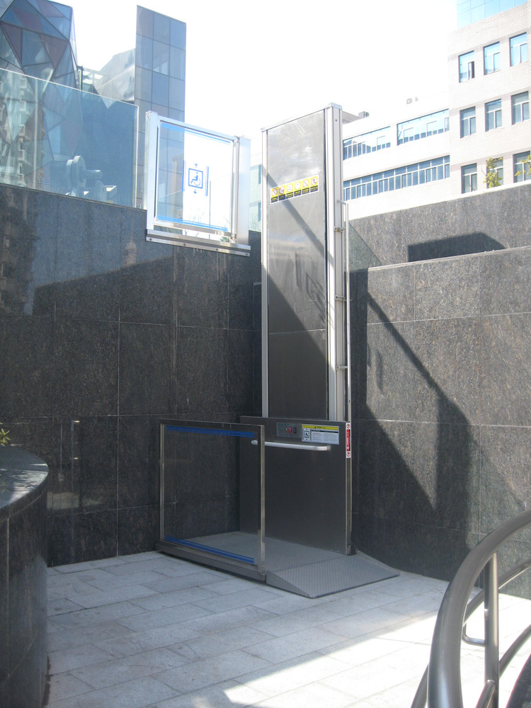 无障碍升降机是为残疾人专门设计制造的升降机。为方便残疾人出行及观光,在社区,医院,学校,宾馆,酒店,公共场所等地方。旅游观光梯通道的自动扶梯旁,安装了无障碍升降机。无障碍升降机可容纳轮椅车出入,残疾人或行动不便者只需按一下两端的求助按钮,值班人员就会立刻开启自动升降机。
