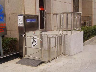 无障碍升降机是为残疾人专门设计制造的升降机。为方便残疾人出行及观光,在社区,医院,学校,宾馆,酒店,公共场所等地方。旅游观光梯通道的自动扶梯旁,安装了无障碍升降机。无障碍升降机可容纳轮椅车出入,残疾人或行动不便者只需按一下两端的求助按钮,值班人员就会立刻开启自动升降机。