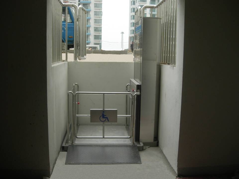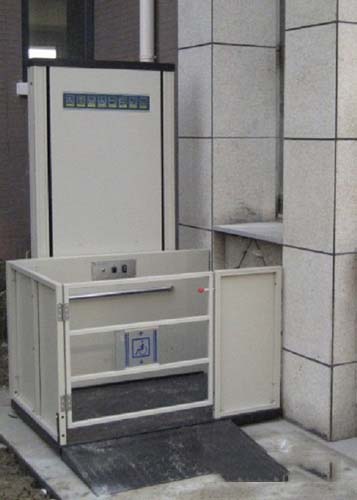 无障碍升降机是为残疾人专门设计制造的升降机。为方便残疾人出行及观光,在社区,医院,学校,宾馆,酒店,公共场所等地方。旅游观光梯通道的自动扶梯旁,安装了无障碍升降机。无障碍升降机可容纳轮椅车出入,残疾人或行动不便者只需按一下两端的求助按钮,值班人员就会立刻开启自动升降机。