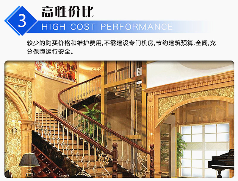 产品简介:别墅家用电梯越来越广泛的应用于现代的生活中,随着生活水平的不断提高,人们开始追求优越的生活条件,因为在外工作一段时间回到家肯定都会希望有一个舒适的环境里休息