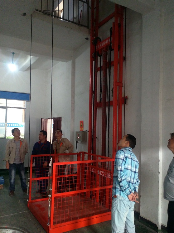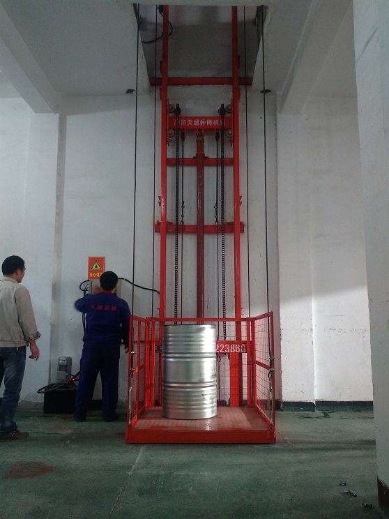 单臂导轨链条式货梯是一种起重升降机械设备,麻雀虽小,五脏俱全。设备靠液压泵站驱动,用于建筑物层高间运送货物的,主要用各种工作层间的货物上下运送;各楼层和升降台工作台面均可设置操作按钮,实现多点控制。产品结构坚固,承载量小,一般在一吨以下,升降平稳,安装维护简单方便,是经济实用的低楼层间替代电梯的理想货物输送设备。