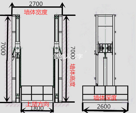 4、液压货梯负荷、载重通过油缸直接作用于基坑,井道强度要求低,砖结构或混结构井道即可。