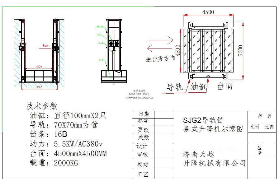 2、提升高度高,采用旁置油缸、或双测式油缸,运行平稳、无噪声、维修方便、使用寿命较长;