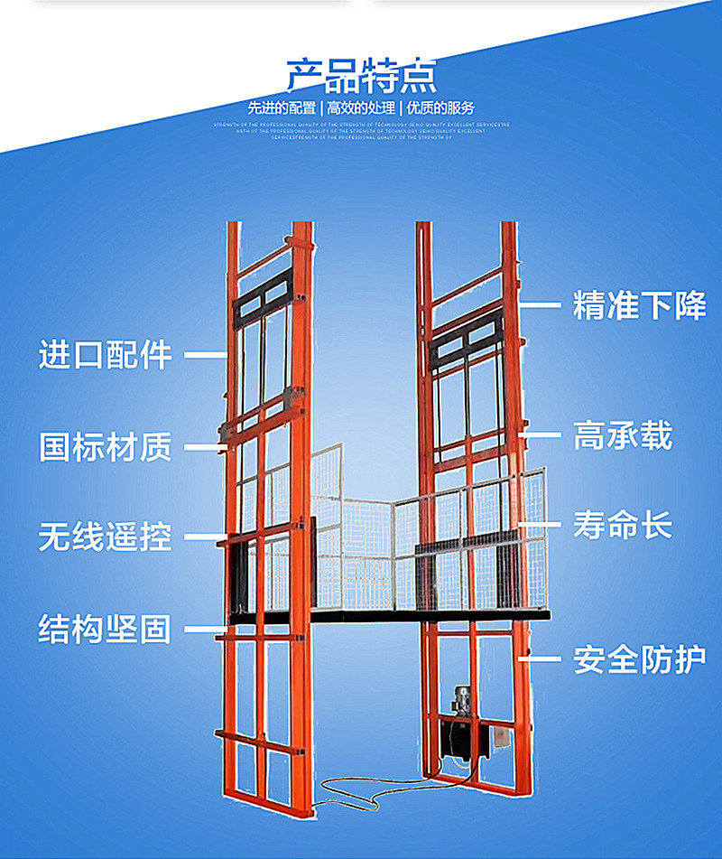 产品简介:液压防爆货梯是一种液压升降货梯,用于二、三层车间、仓库、化工工业厂房、仓库传输,高度可以为<100mm,液压防爆货梯适用于不能开挖地坑的工作场所,同时液压防爆货梯无须上部调点具有多种形式,动作平稳、操作简单可靠,液压、电器多种保护,让楼层间货物传输经济、轻松。