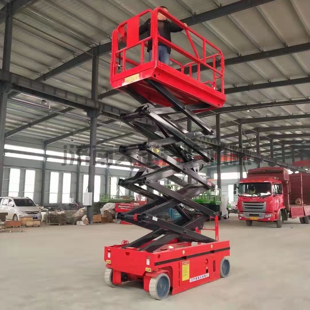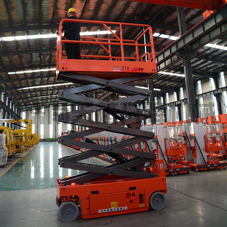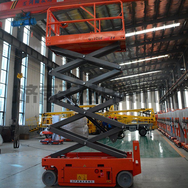 全自行式升降平台平台只需一个人操作,所有的动作均在工作台上用操作手柄控制,电机为无级变速。有效的延长了蓄电池和电机的使用寿命,电机仅消耗工作时的能量。