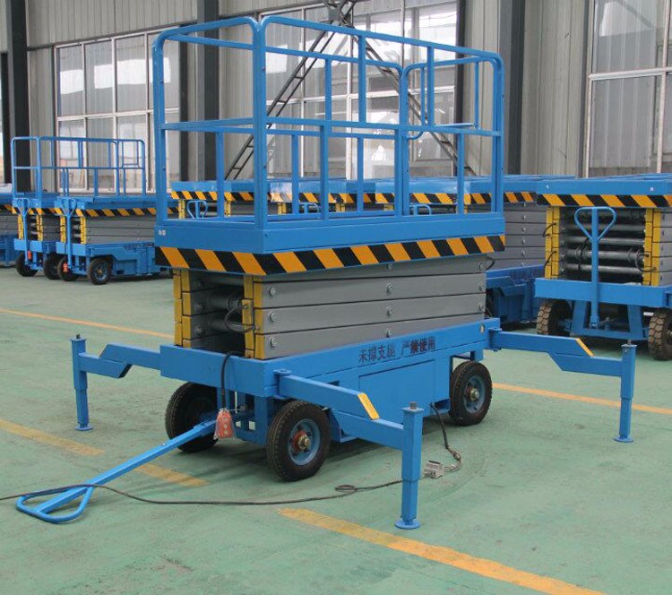二移动剪叉式升降平台 本产品分为:四轮移动,三轮自行,两轮牵引,剪叉主结构采用上海宝钢锰钢矩形管制作,平台升降动力为手动或电动,升降动力分为220V或380V电源,采用意大利和国产液压泵站,台面设有防滑绝缘塑质扣板,更换方便,整体美观大方。特点:具有移动灵活、升降平稳、操作方便、载重量大等特点,并可在停电时正常使用。用途:主要适用于工厂建筑、装饰、工程安装、工矿车间、轮船码头等各种高空作业场所。